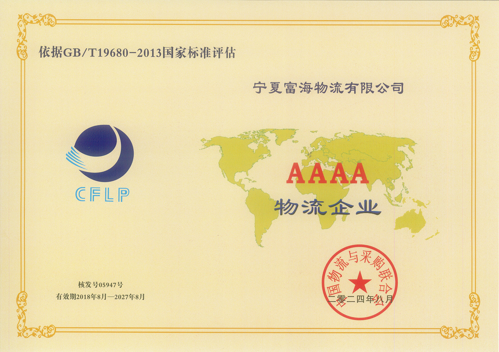 公司經過十余年的不斷努力及創新,現已發展成為寧夏回族自治區重點物流企業,先后被評定為國家4A級物流企業、2A級擔保存貨管理及質押監管企業、全國第二批多式聯運示范項目試點企業、中國西部物流百強企業、石嘴山市重合同守信用單位、自治區級商貿物流集散中心。同時多式聯運事業部鐵路線班組榮獲全國“工人先鋒號”稱號、“富海物流司機之家”被列入中華全國總工會“提升職工生活品質試點單位”。